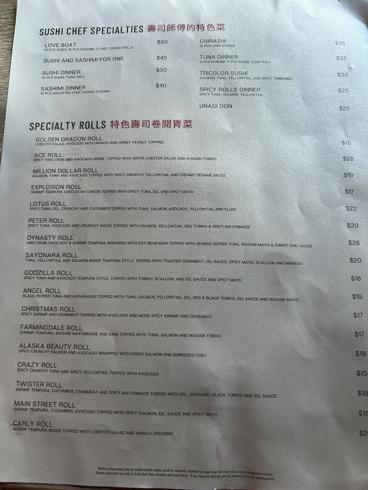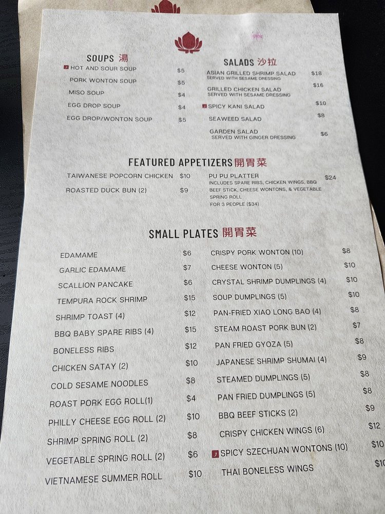 Lotus Restaurant, located in Farmingdale, NY, offers a versatile menu with a focus on Asian cuisine. Their selection includes traditional soups like Egg Drop and Hot and Sour, along with enticing appetizers such as Roast Duck Bun and Taiwanese Popcorn Chicken. Customers rave about the exceptional service and fresh, delicious food. Reviews mention favorites like shrimp toast, scallion pancakes, and unique dishes like the Mama Mia roll. With a modern ambiance and a fully stocked bar, Lotus provides a welcoming environment for diners to enjoy a variety of dishes. Whether you're craving classic Chinese entrees, sushi, or small plates for sharing, Lotus Restaurant has something for everyone. Don't miss out on this must-visit spot that guarantees a fantastic dining experience.
